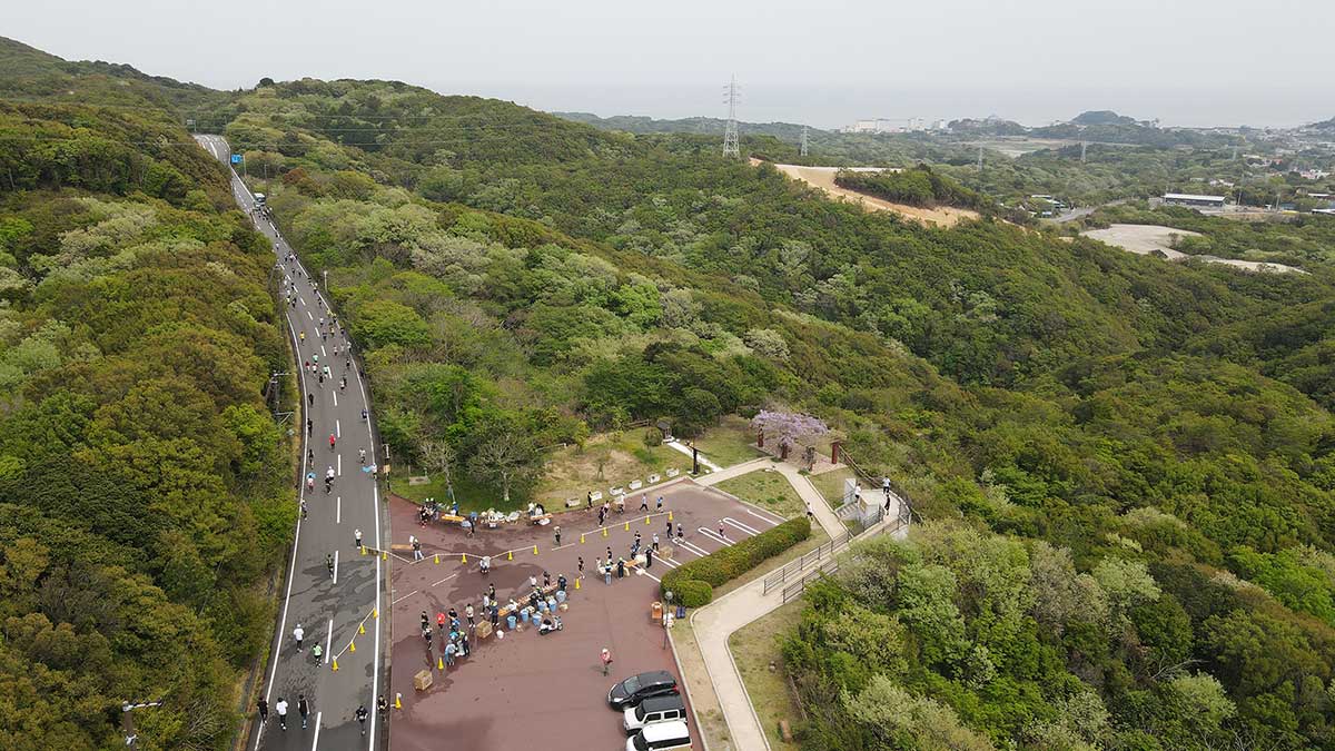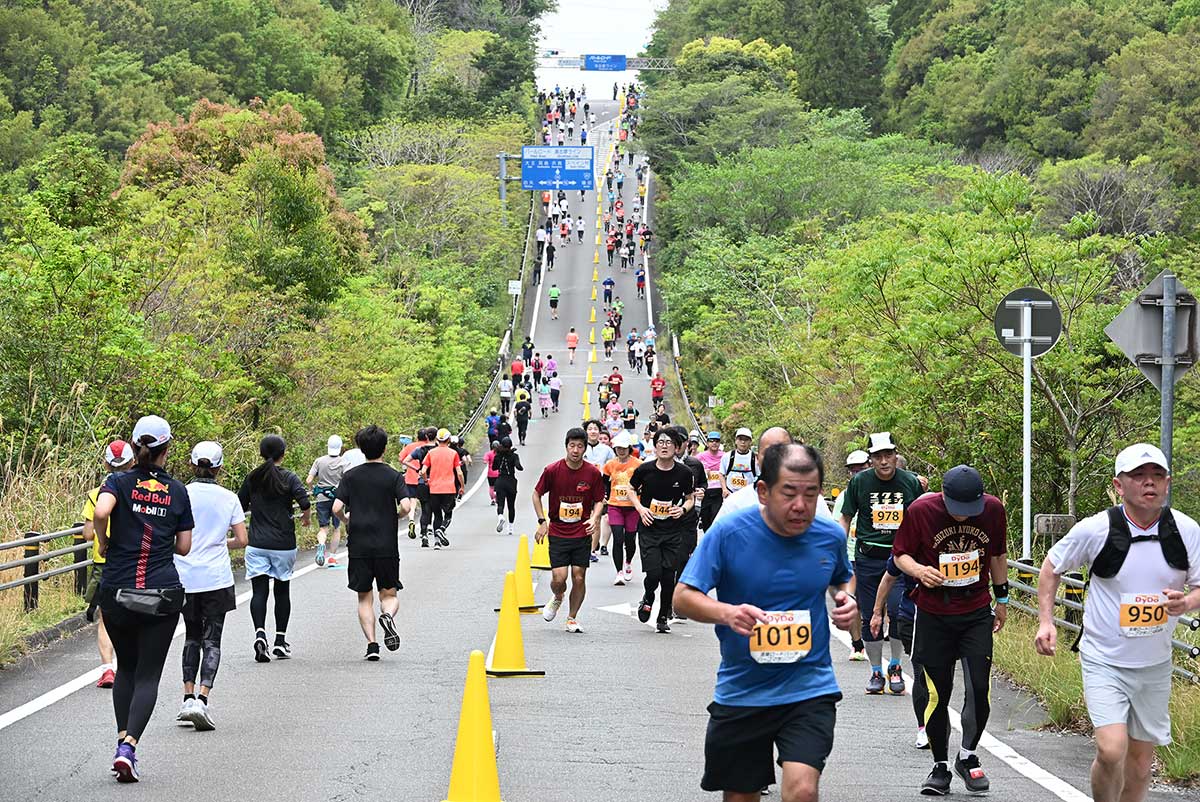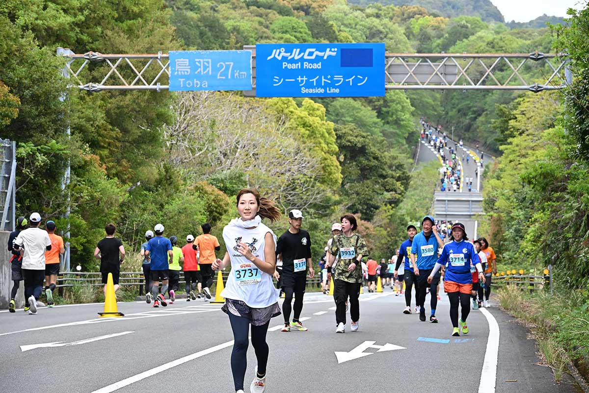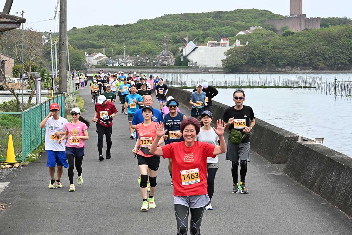 マラソン大会の華やかなムードの中、的矢湾大橋からの絶景が楽しめます。