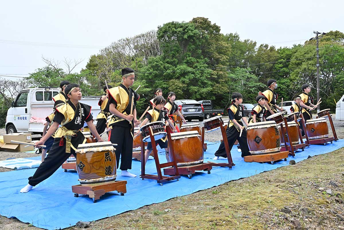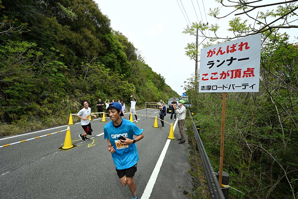 コース沿道で志摩荒波太鼓保存会が太鼓演奏でランナーを応援します。